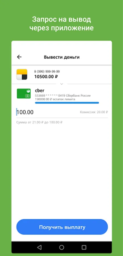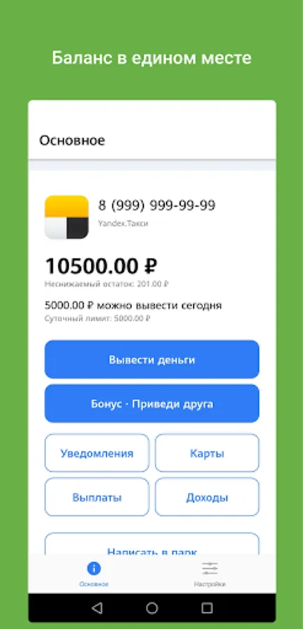 Through this application, drivers withdraw their earnings, which they receive while working in a taxi through Yandex taxi, Citymobil, Gett