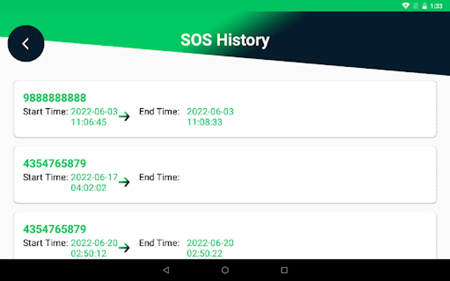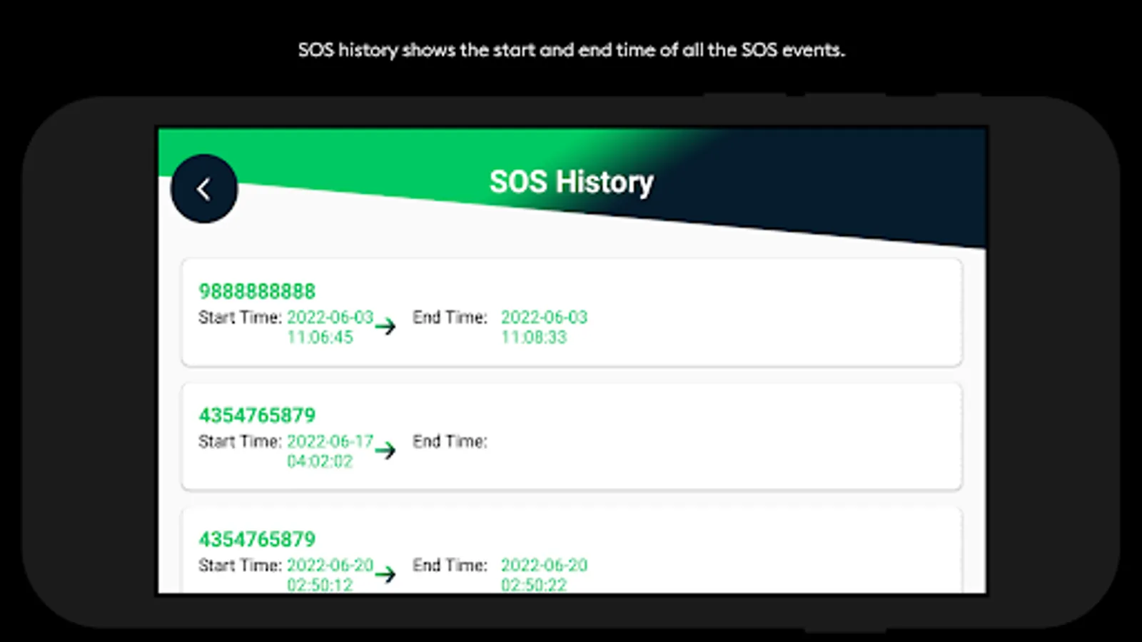 The duress alarm app is part of the safety requirements. During emergency, drivers can contact the call centre by activating the SOS button. Location of the vehicle will be sent to the monitoring facility when SOS button is activated.