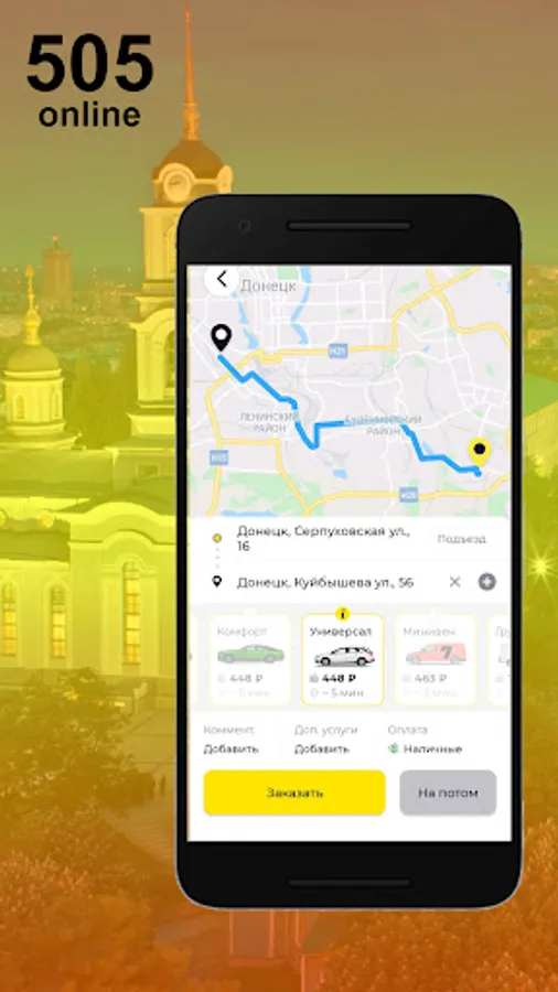 No more wasting time calling taxi services. A couple of clicks and a car with a taxi 505 will be waiting for you at the specified address!