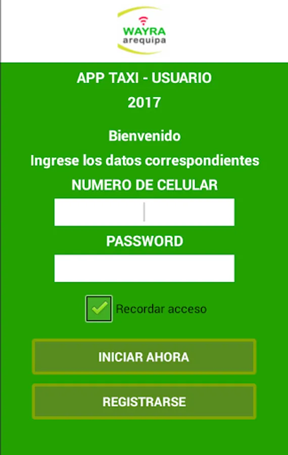 This is the application taxi booking city Arequipa Peru.