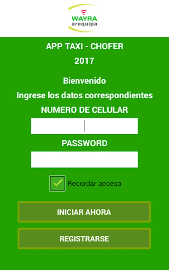 This is the application taxi booking city Arequipa Peru.