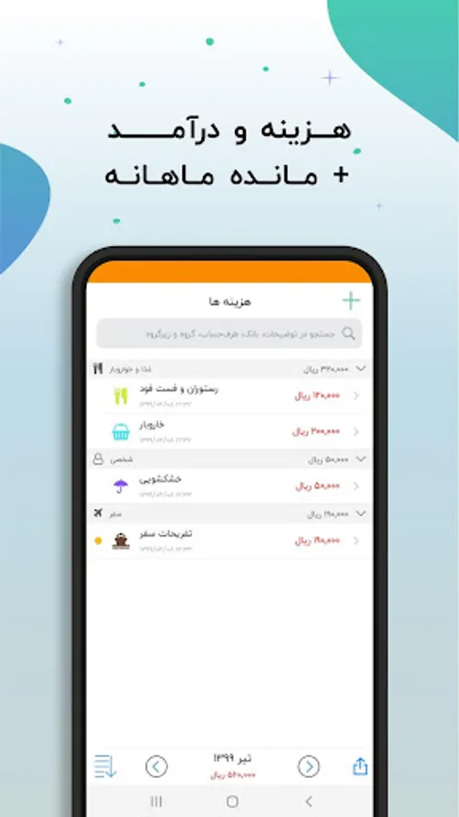 • ورود نامحدود آیتم های هزینه و درآمد