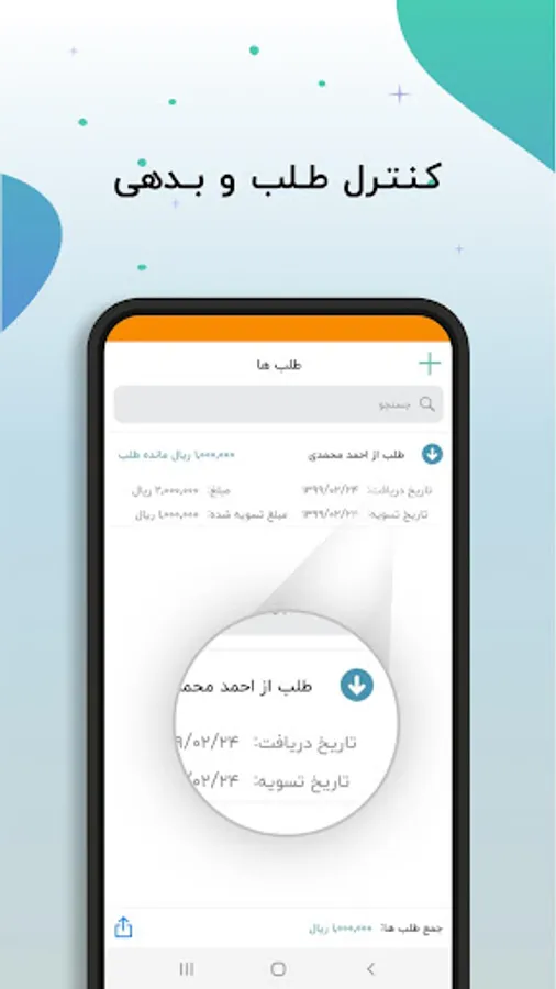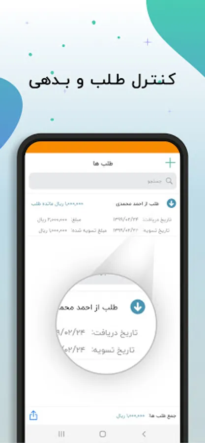 مدیریت طلب ها و بدهی ها :طلب و بدهی های طرف حساب های خود را می توانید ثبت کنید ✓