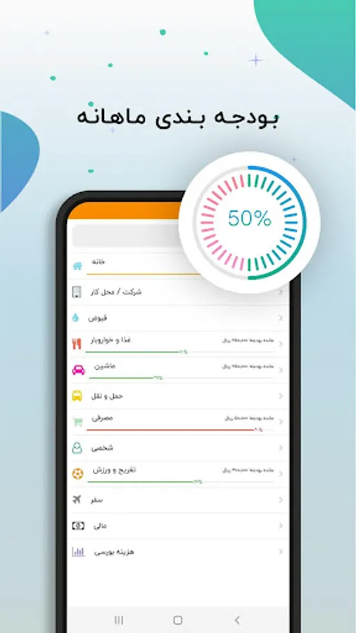 بودجه بندی: اگر برای هر دسته بندی بودجه بخصوصی در نظر دارید می توانید آن را تنظیم کنید تا در ✓مواقع ورود هزینه جدید بدانید که چه میزان از بودجه مورد نظر باقی مانده است