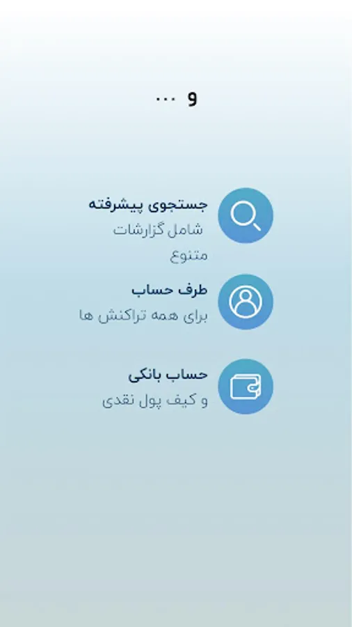 حساب های بانکی: می توانید با معرفی حساب های بانکی تراکنش های مرتبط با حساب را ثبت نمایید ✓