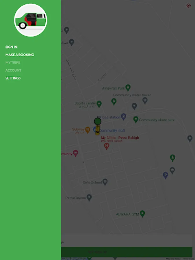 - Hail one of our vehicle through the app by pressing on a car closest to you