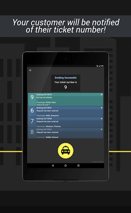 One tap on the app and the customer receives a ticket number in receipt of their booking, and the driver receives the job immediately.