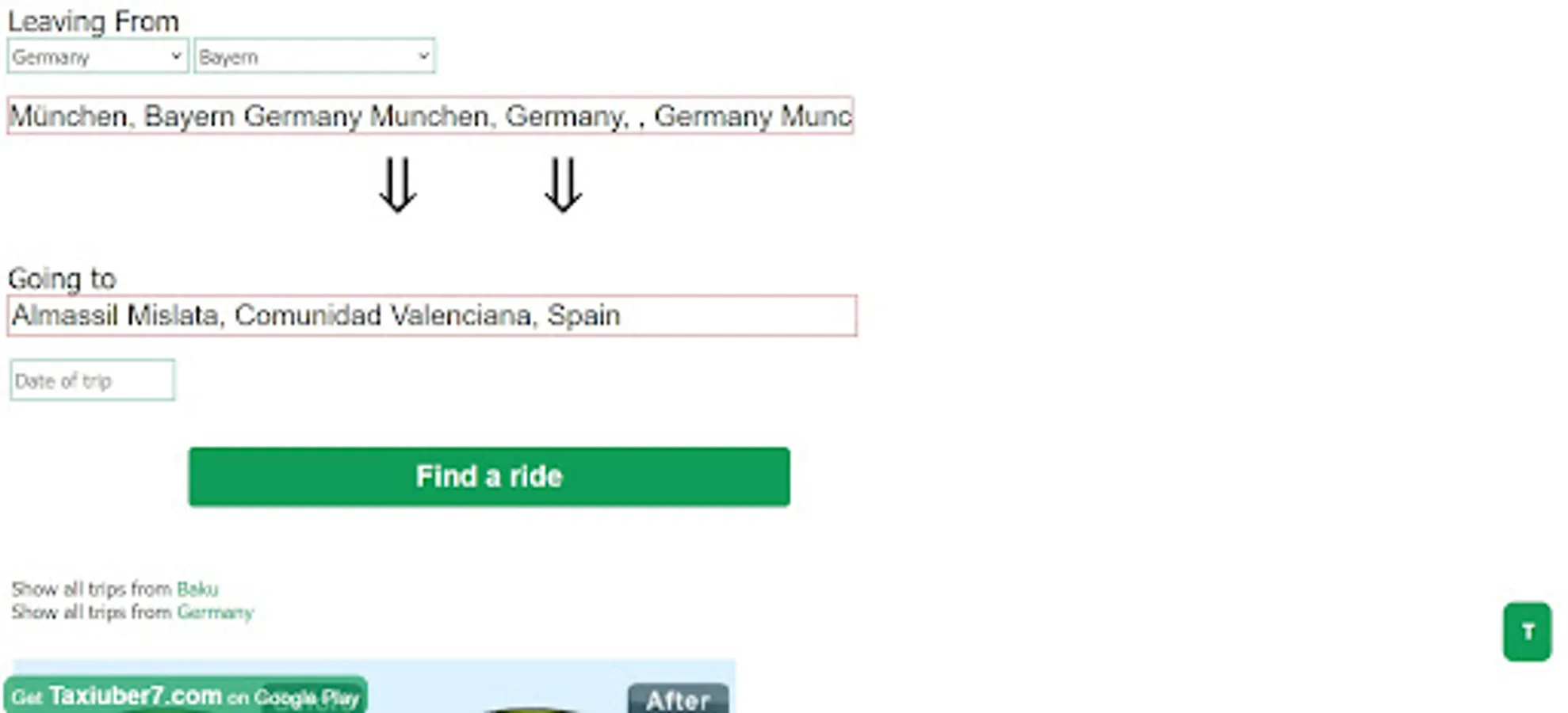 • Search for a ride going anywhere you want to go.