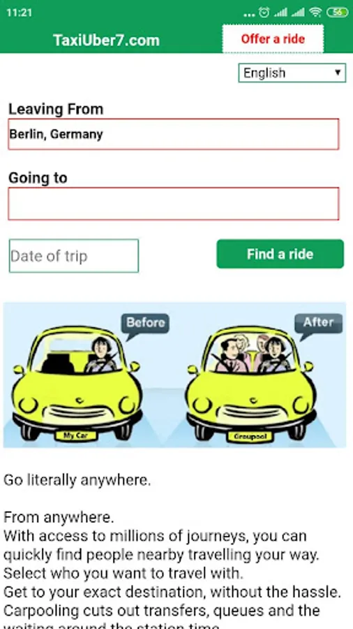 Share rides with someone going your way. Find rides at your doorstep. Get away for the weekend by carpool, bus or car. Travel how you want - carpool, bus - the choice is yours with millions of rides on Blataxi at your fingertips!