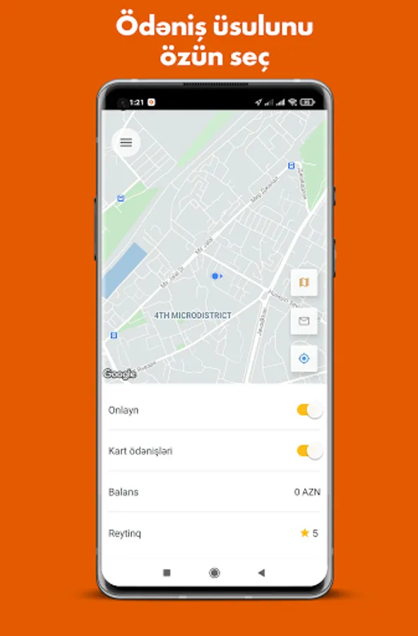 №2. Sürücü bank kartı ödəməsi ilə sifariş qəbul edib etməyəcəyini seçə bilər.