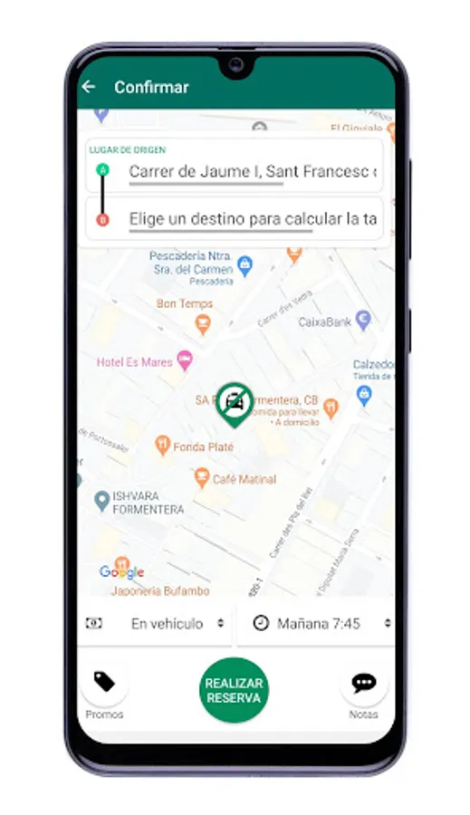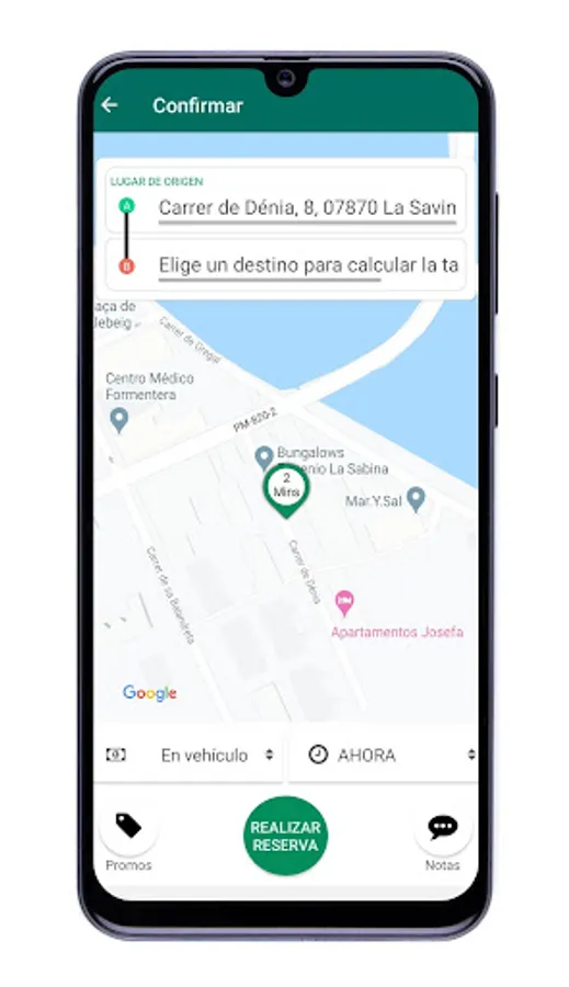 The advance reservation for a taxi service may be 2 hours for passengers with a destination in Puerto de la Savina, for other destinations the service will be immediate.