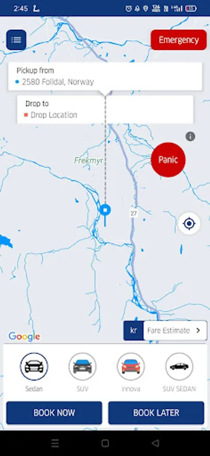 - Your current location is picked up automatically and add your destination to get a fare estimation