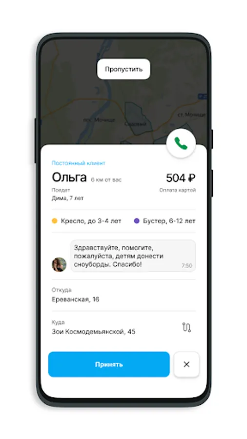 - Быстрое назначение: получайте заказы от родителей за 10 минут;