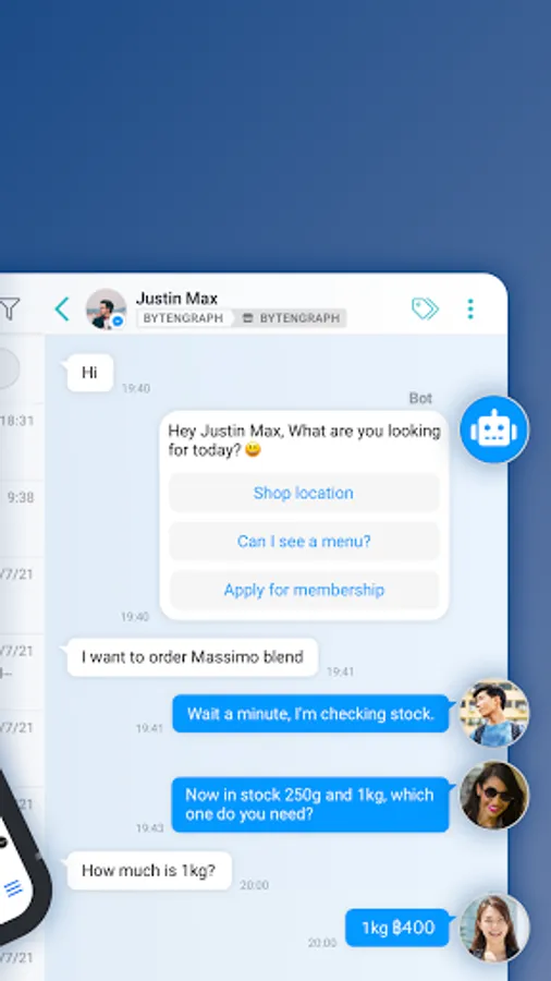 Merge your popular social media, FB Messenger, LINE Official etc. in the platform. So you can respond to chat, offer products and services immediately.