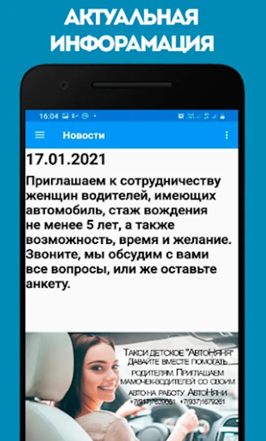Children's taxi AvtoNyanya was created for placing orders that do not have any special difficulties that a child can complete to order a taxi. The application processes your order and the taxi itself receives it and according to the specified data that the user enters, a taxi will arrive.