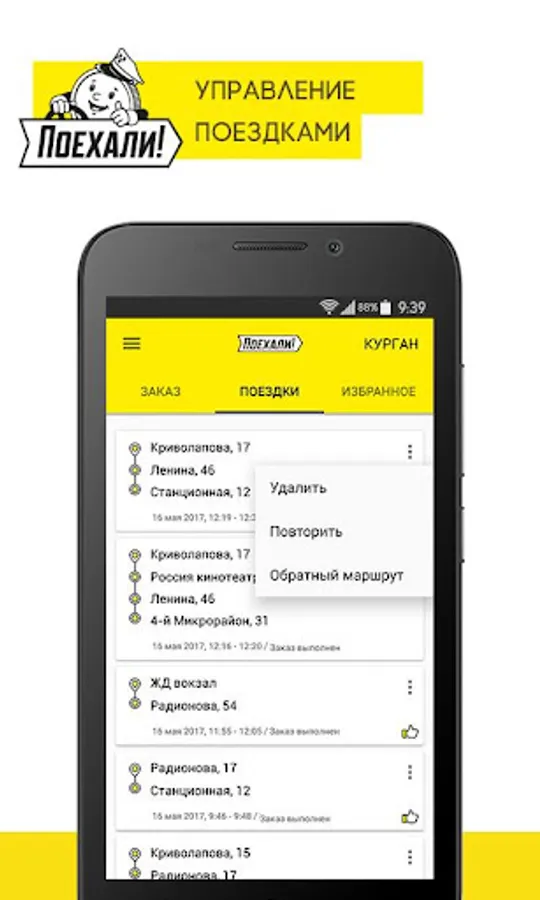 In small towns, the aggregator sometimes offers only one way to order a taxi, for example, through an operator. Online ordering has more advantages. In the application, you can view, rate and delete your past trips, repeat them in one click.