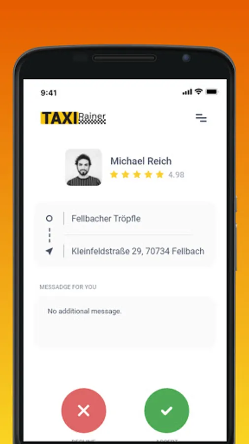 Taxi Rainer Driver app – the app for drivers. Only for intern use of the company Taxi Rainer Fellbach.