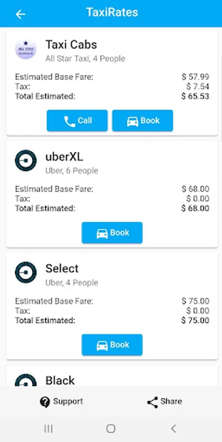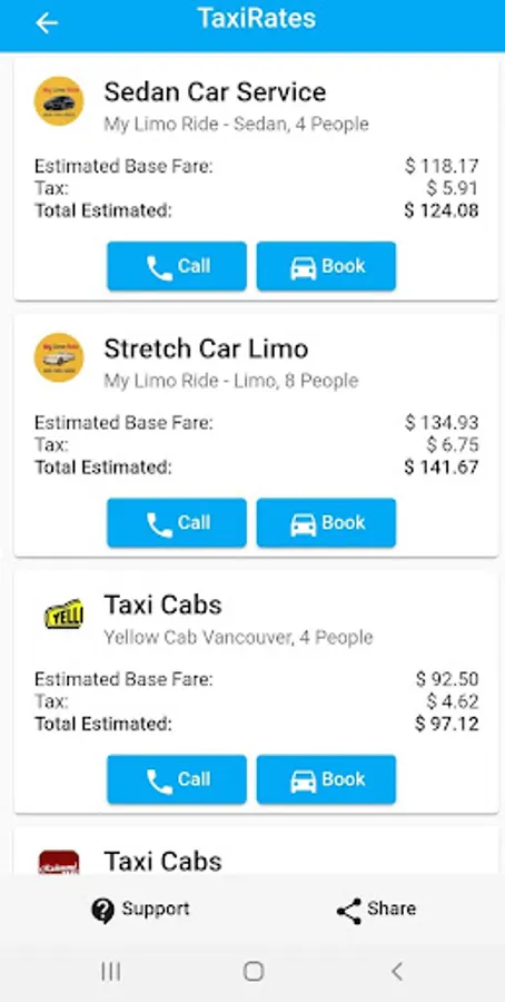 Compare Taxi Rates system is a reliable one-stop source to calculate Limo rates, Ride Sharing fare estimator, Ride Hailing fare calculator and Taxi Meter Rates. Our system allows you to calculate fare and then choose the best and most affordable option. You can use the taxi Rates app or web-based system to get an estimation for a ride in a taxi cab, TNC vehicle, Limousine, Sedan car service. It takes only a few steps to add your pickup/drop-off locations, time and hit search. You will find rates for a TNC, Ride Sharing, Ride Hailing, limo, sedan car service, and taxis. We are the first system which compares all transportation modes like a limousine, taxi cabs, TNC and rides sharing. You can compare per person cost in a limo with Ridesharing or taxis and choose the best. We offer a community forum for everyone to engage in and ask questions or answers regards to ridesharing, taxis, Cabs, Ride Hailing Ridesharing and limos.