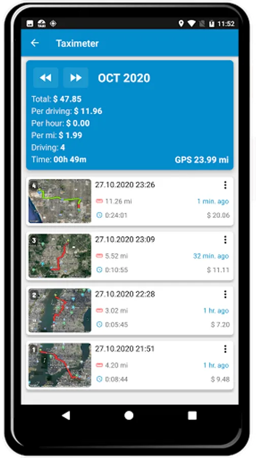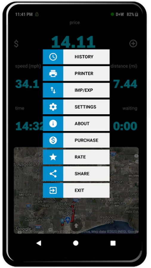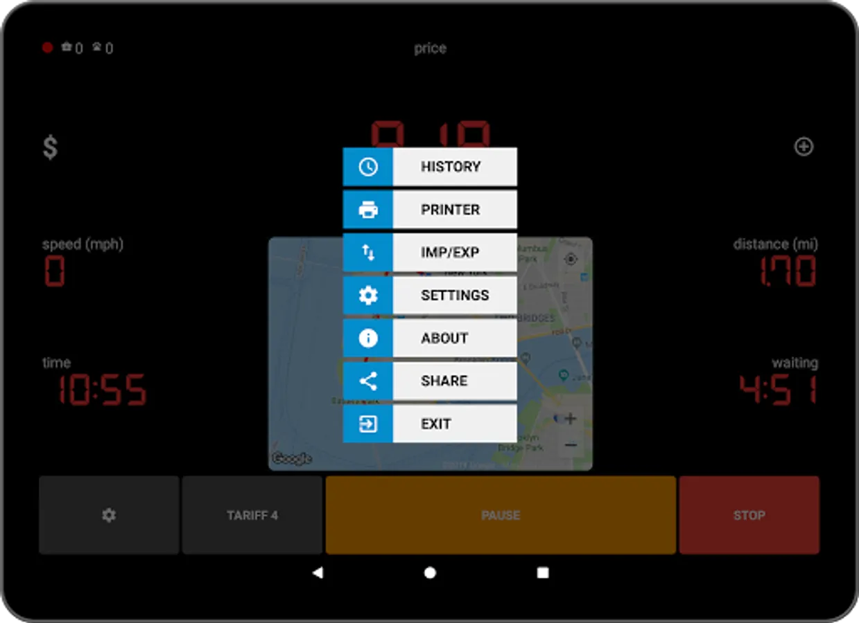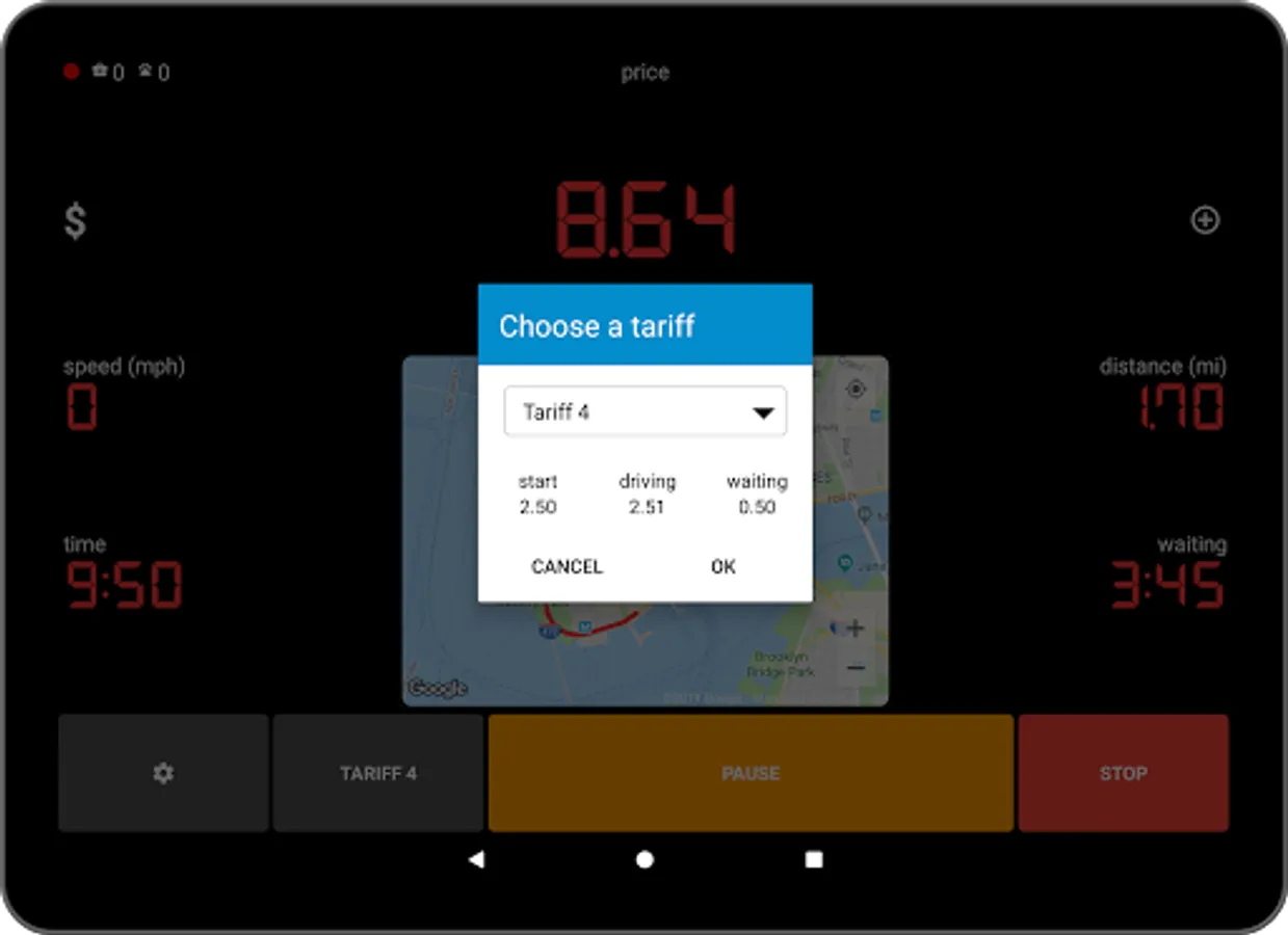 Taximeter application calculates in two ways. Calculate the distance and waiting time or calculate the distance and total time.