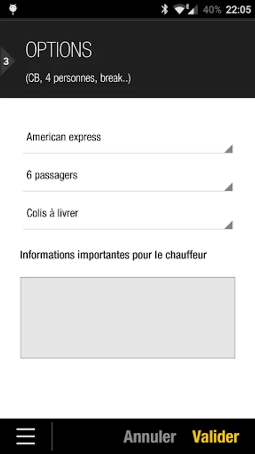 . Choose your type of vehicle (sedan, station wagon, minivan, pmr)