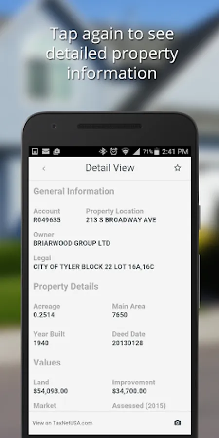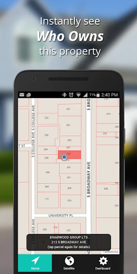 Tap a parcel to see who owns it. Tap it again to reveal detailed property information - including any pictures you attached to that property record.