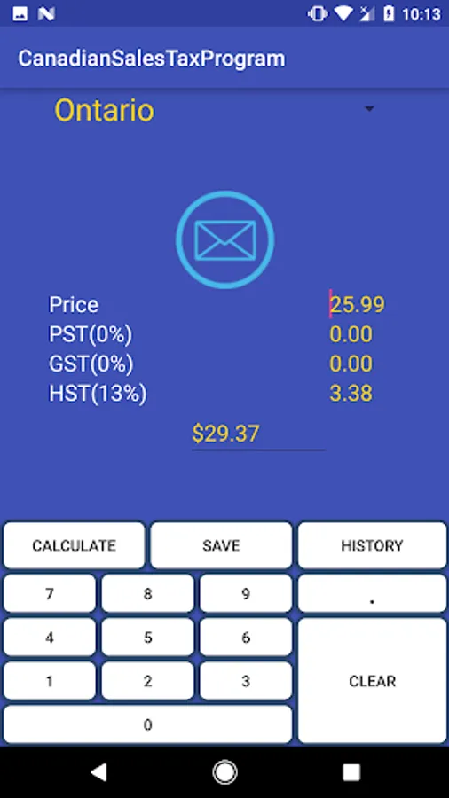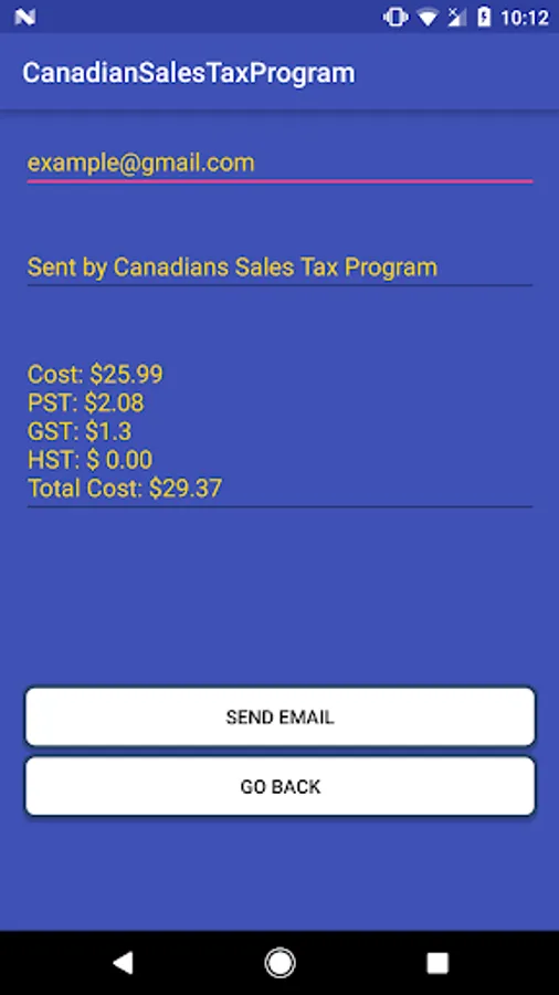 Canadian sales tax program is here to help you calculate your sales tax needs in every province in Canada. By just entering the cost of an item, it will calculate the tax and final price evaluation. This application can also save items and prices disabling the need to calculate the same price multiple times with an easy to use interface. Users also have the ability to email what they have calculated using the app.