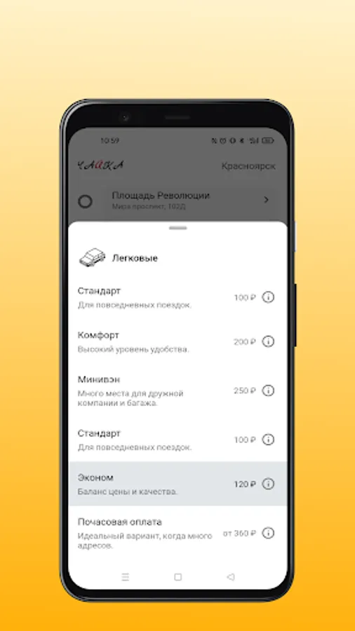 Order a taxi without talking to the operator. This is very convenient and clear: you can see on the map where the car assigned to your order is located. Sending an order through the application "Chaika: order a taxi" means acceptance of the terms of the public offer, which you can read on the website Chaika24.rf