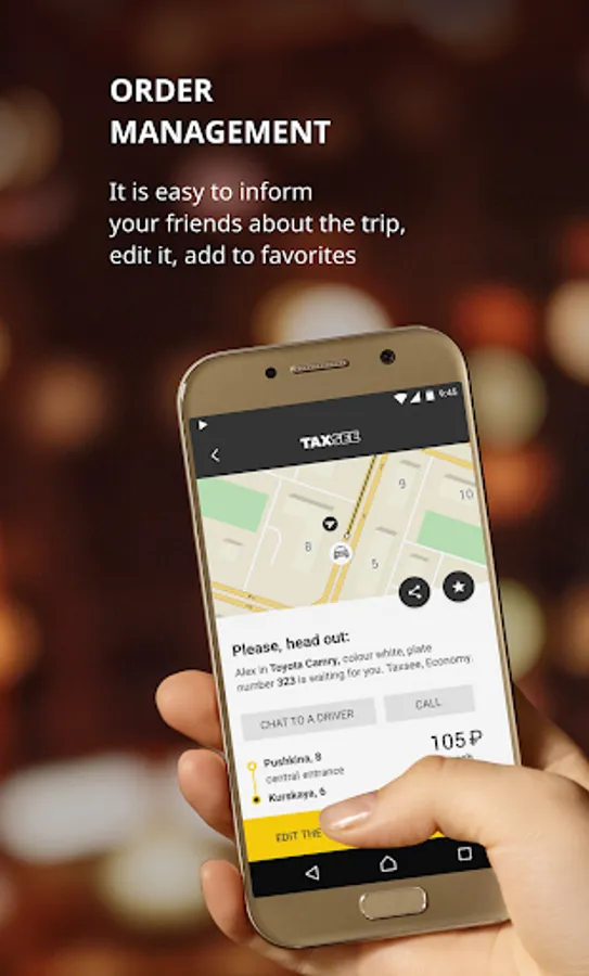 The service adapts to the user with each successive order: it offers the addresses of previous trips, remembers the last selected tariff and method of payment. It saves valuable time. Rating the trips helps to improve quality of services and make the service more convenient.