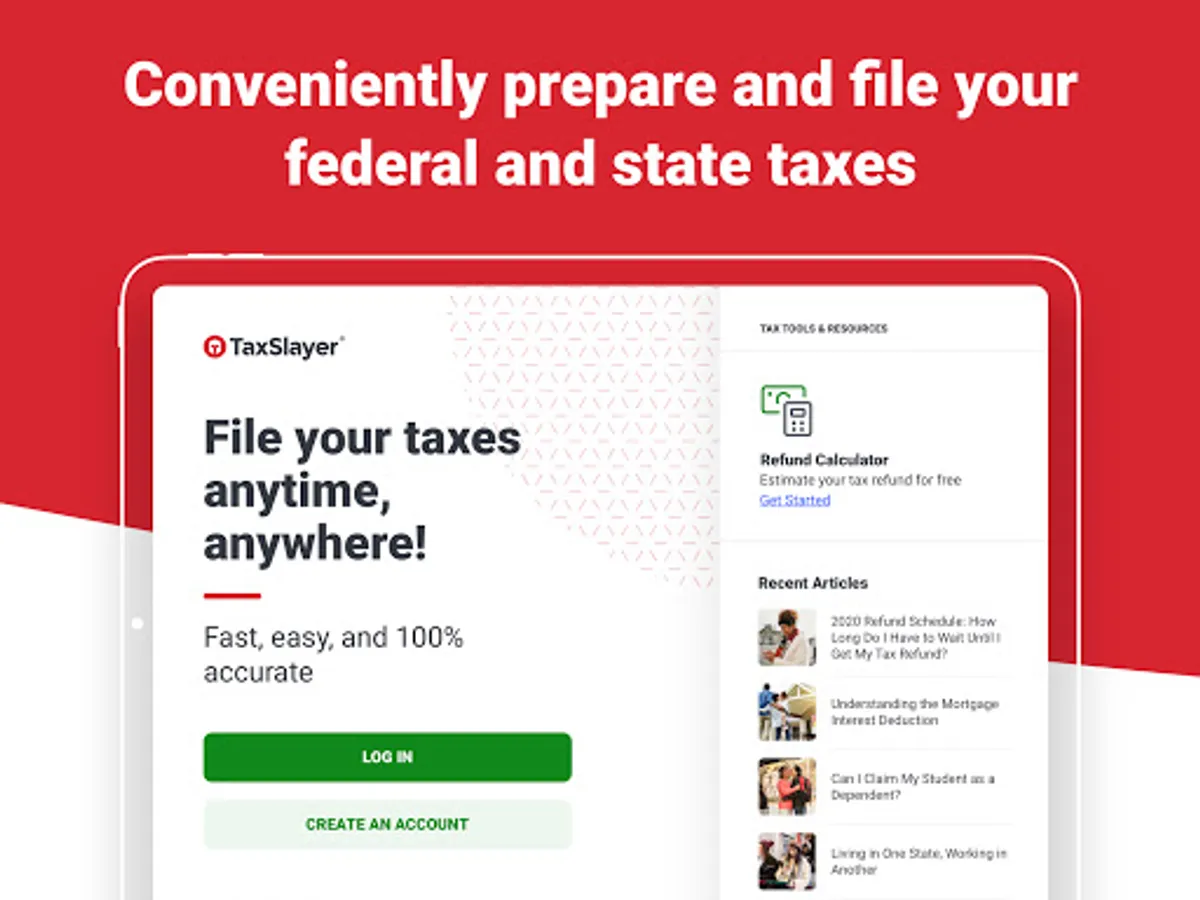 TaxSlayer has all the tools you need to slay your taxes and get your biggest refund. File your federal and state tax returns using your smartphone, tablet, etc. – anytime, anywhere!