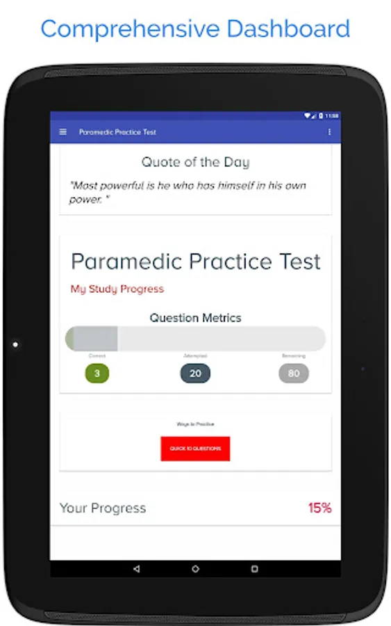 Paramedic Practice Test app is a powerful Exam Simulator app that creates Tests based on NREMT-Paramedic Exam.