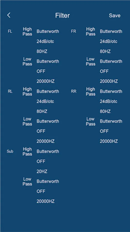 Crossover Configuration for each Channel