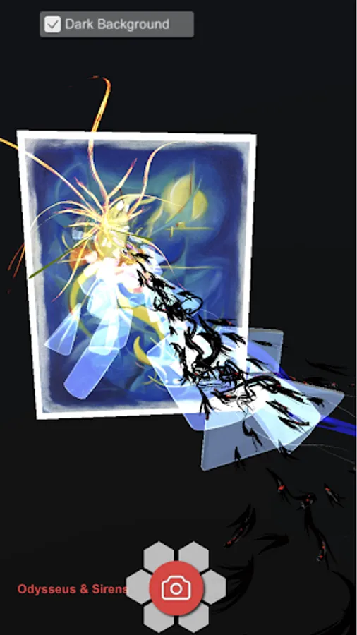 Point your device at the '2D artwork' to see Augmented Reality that is integrated to enhance the narrative, emotion and energy of the work. Adding a meta-physical, inter-dimensional layer for further contemplation.