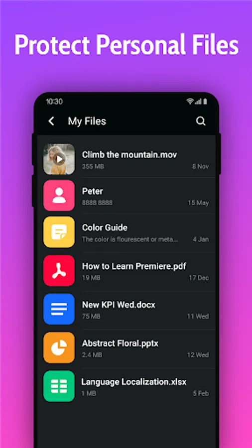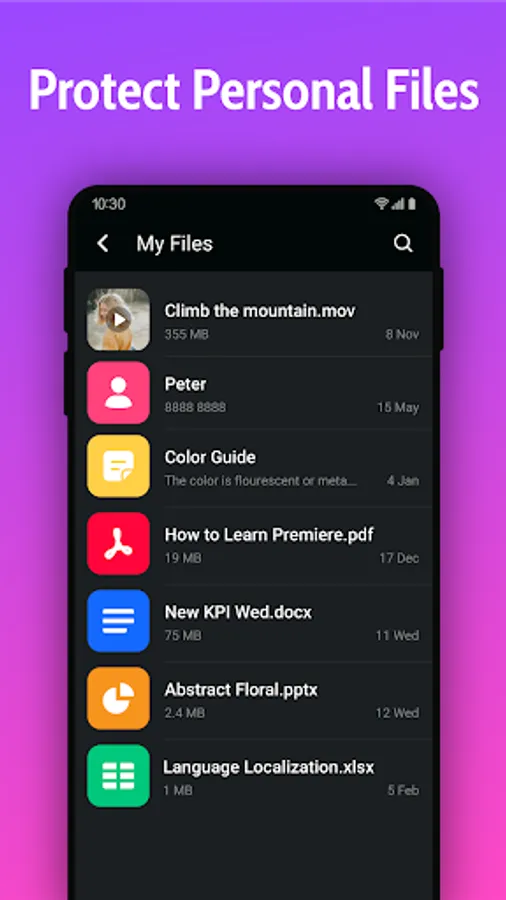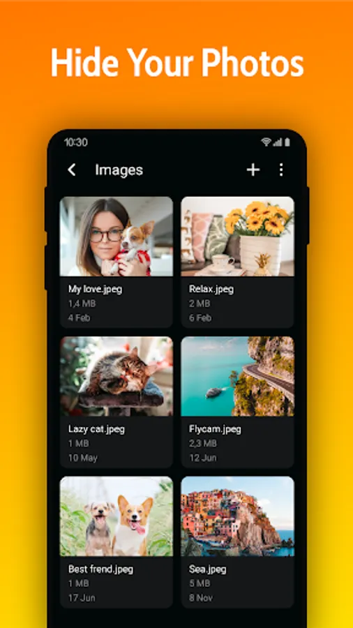 The calculator photo vault supports viewing files in all formats, JPEG, GIF, PNG, SVG, MP4, MKV, RAW, etc., and helps you keep hidden photos, and secret folders organized clearly.