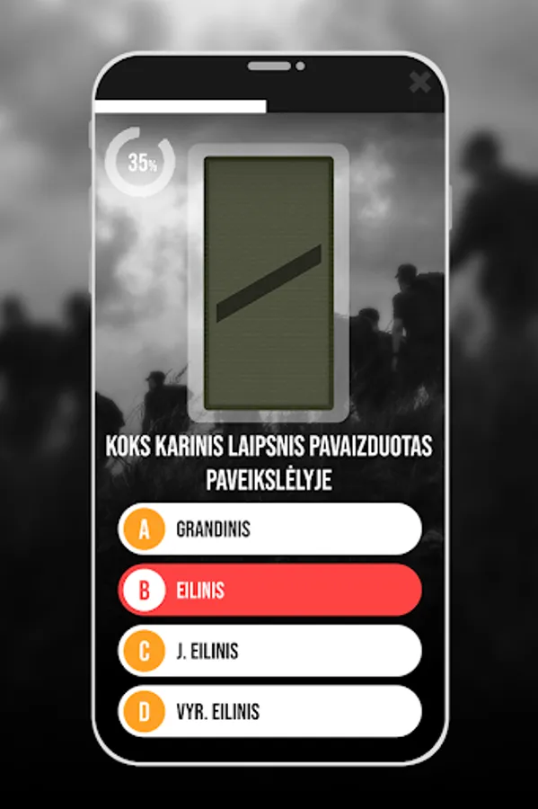 At the beginning of the game, you will be presented with tasks and questions related to the activities of the army, tactics, history and many other areas. Successfully solving tasks earns you points and progress points that will allow you to move up the rank map.