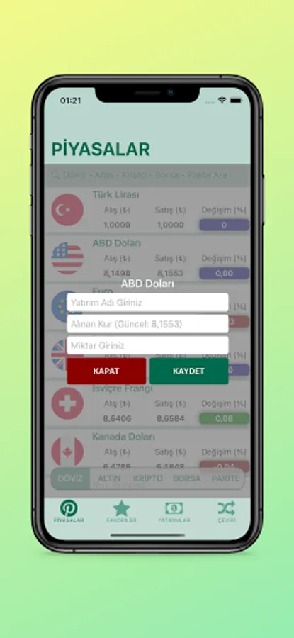 ForWall lists units such as Currency, Gold and Crypto, Stock Market and Parity. It allows you to follow more easily by favoring the unit you want. It calculates its equivalent in TL at current exchange rates by entering the amount in the unit you invest in.