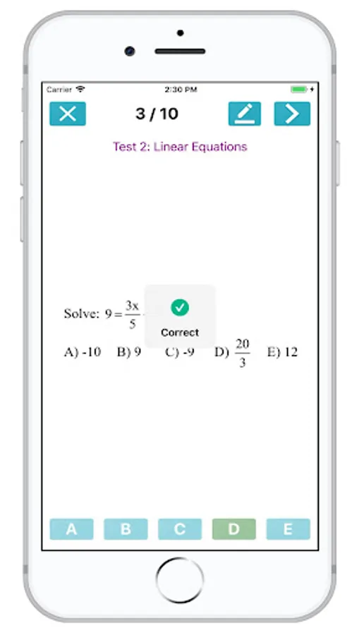 Each test is composed of 10 questions. Students have a sufficient number of different types and quality questions to practice and get ready. This APP functions as a practice questions text but also serves as a resource for both students and teachers.