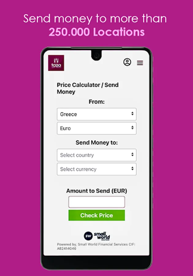 250.000 locations worldwide using our money transfer app.