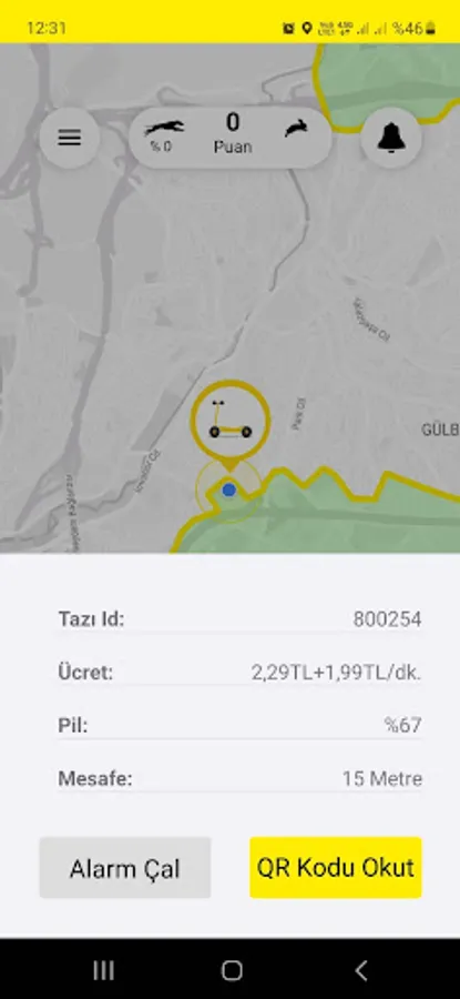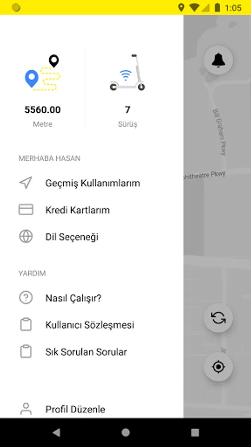You can register our application with your phone number. In the application, you are met with your usage summary information and a list of the closest scooters to your location.