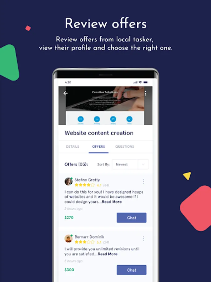field you choose will now place bids on your task. Check the tasker profiles and their