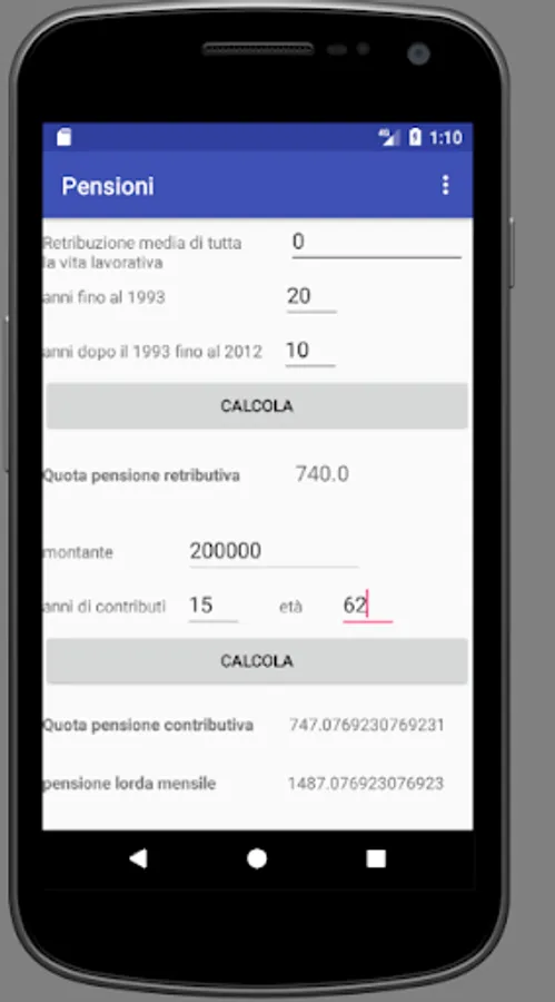 This application allows you to calculate when to retire and the extent of stessa.Utile to compare the contribution system with the pay and make comparisons
