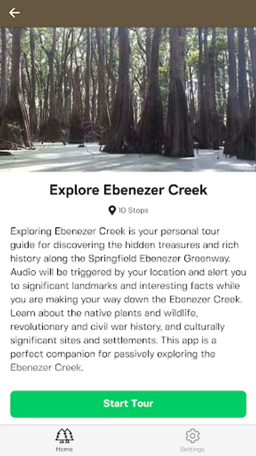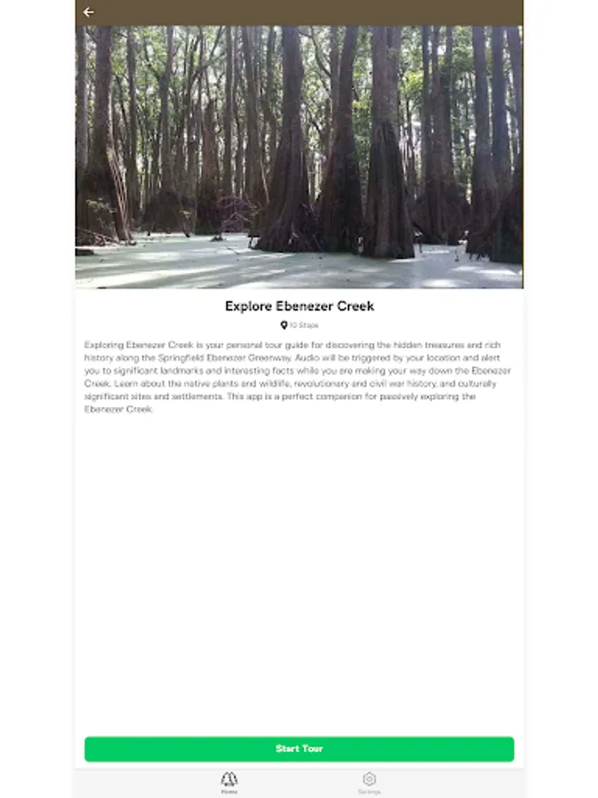 Exploring Ebenezer Creek is your personal tour guide for discovering the hidden treasures and rich history along the Springfield Ebenezer Greenway. Audio will be triggered by your location and alert you to significant landmarks and interesting facts while you are making your way down the Ebenezer Creek. Learn about the native plants and wildlife, revolutionary and civil war history, and culturally significant sites and settlements. This app is a perfect companion for passively exploring the Ebenezer Creek.