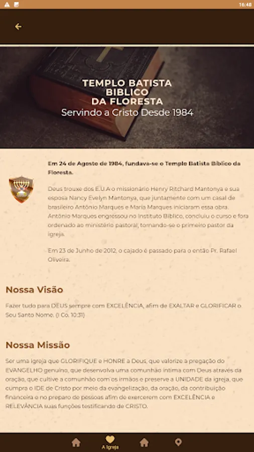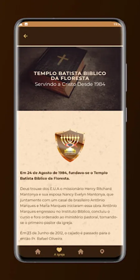 Antônio Marques entered the Instituto Bíblico, completed the course and was ordained to the pastoral ministry, becoming the first pastor of the church.