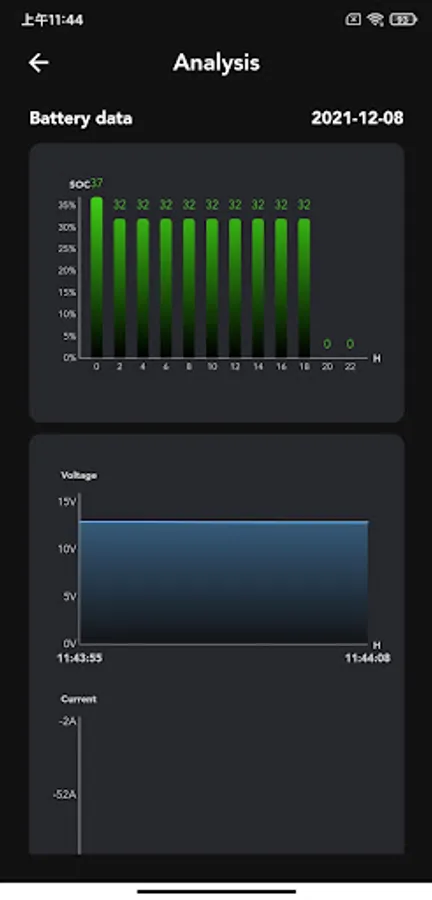 • Records the last 12 hours of battery SOC%, real-time battery voltage and current data, giving you full information about the battery's operation
