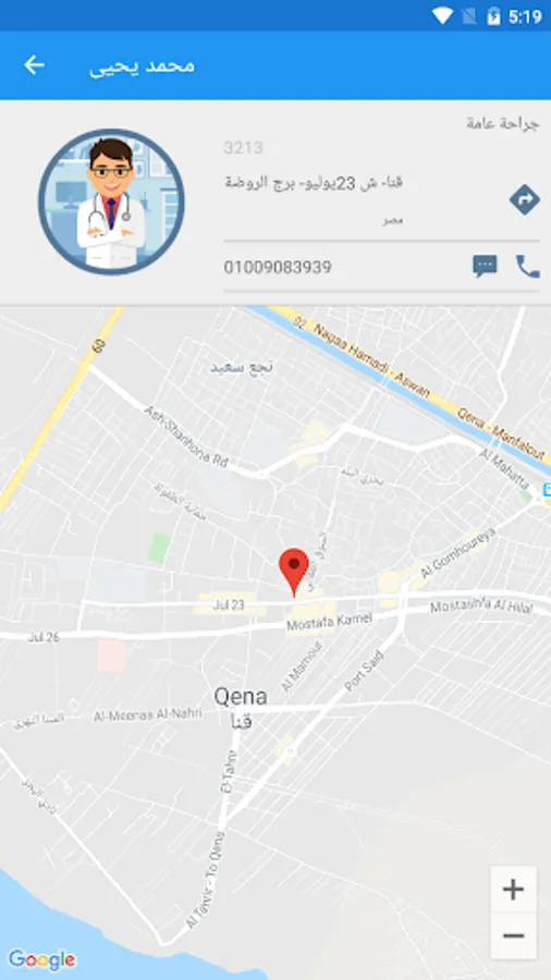The program shows you all the numbers and means that enable you to communicate with all health facilities within Qena Governorate