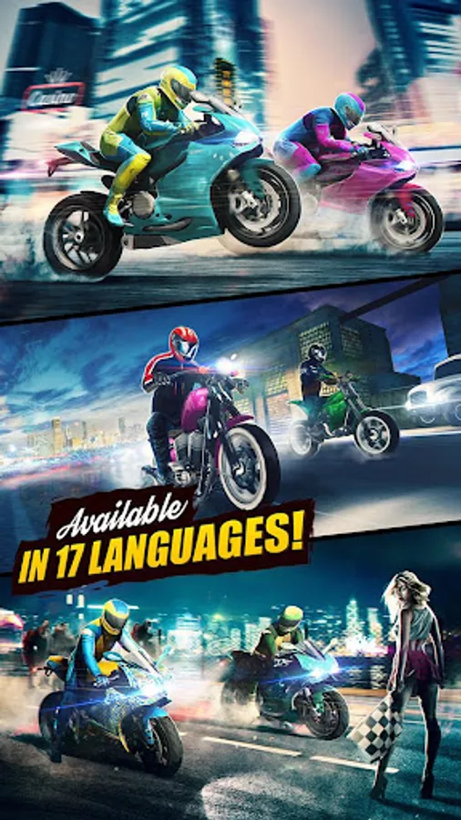 This bike racing game is optimized to work smooth on most devices. Additionally, it was translated into 17 languages from all over the world. Nothing can stop you from owning the streets now!