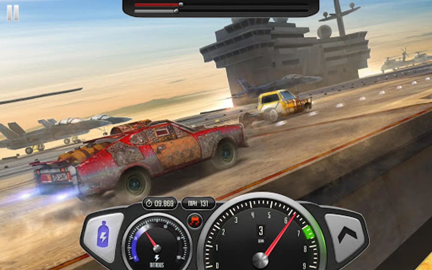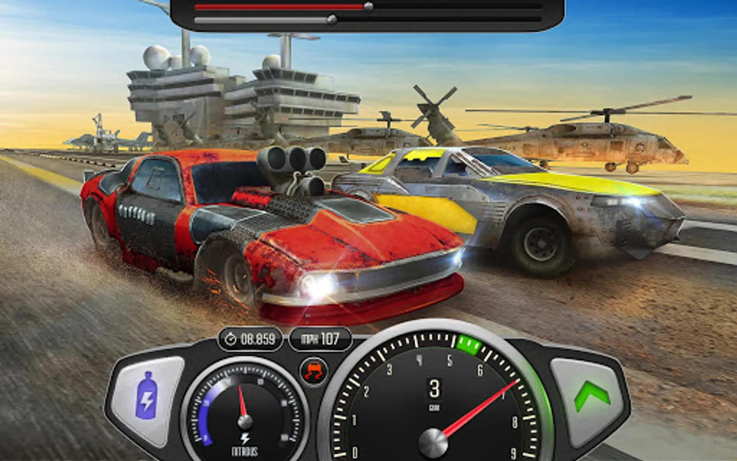 Jump behind the wheel, wipe off the dust from your goggles and race for the best possible time on the aircraft carrier! Download Drag Rivals 3D NOW!