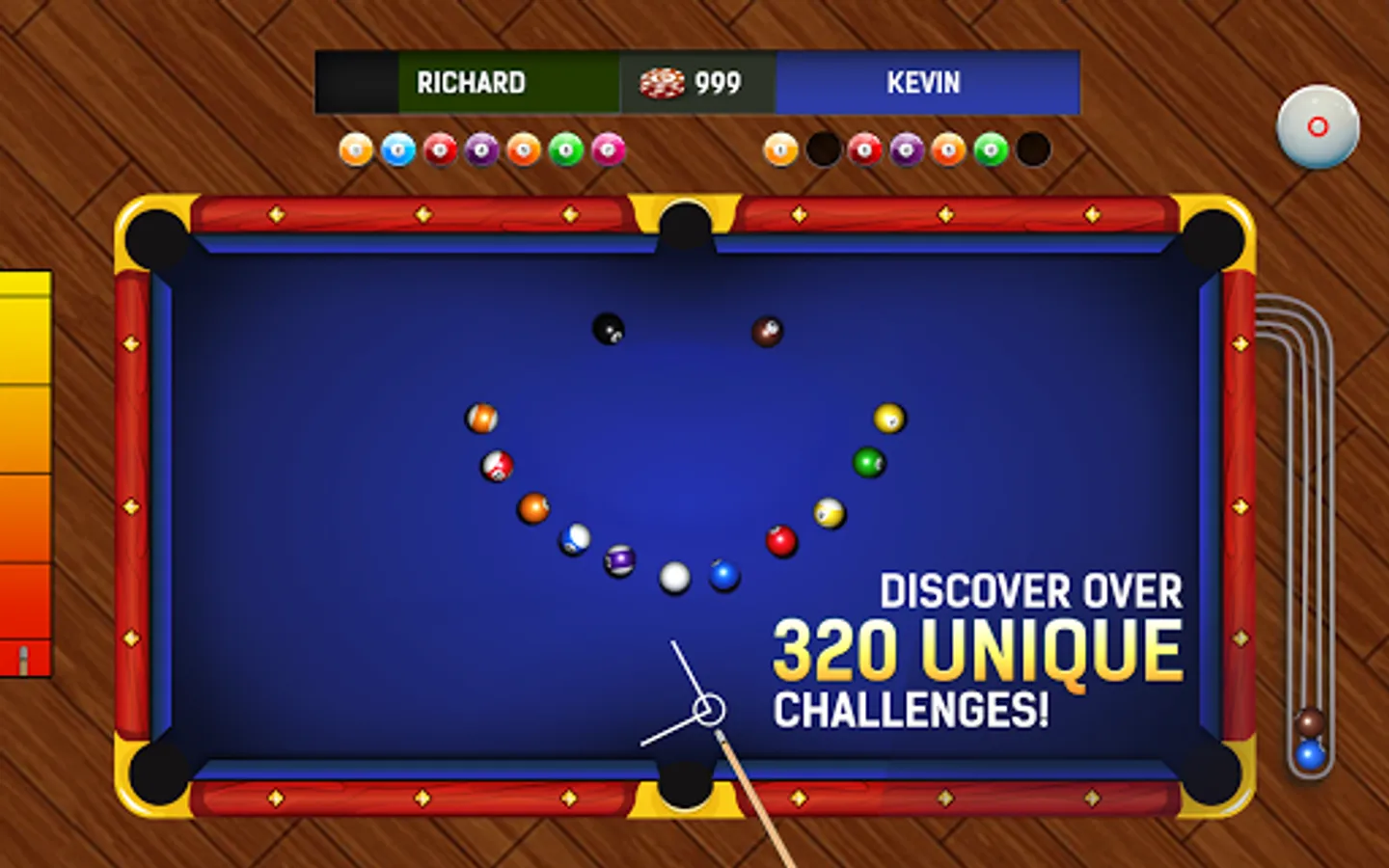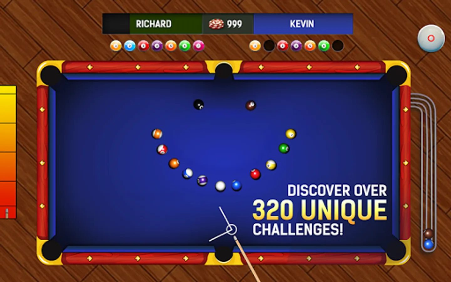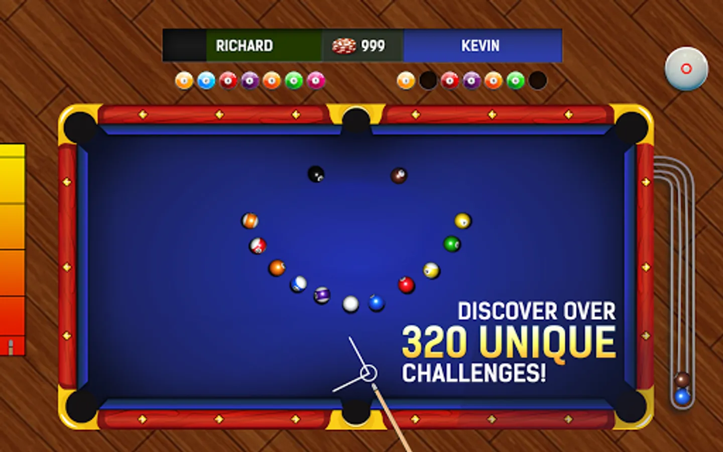 Become a master in 8 Ball Pool and learn new billiard trick shots! Improve your skills in Single Player Mode. Be the best, making extremely satisfying trick shots. Climb your way up to the top of the online leaderboard by using Challenge Mode. Over 320 challenging levels provide a totally new pool experience.