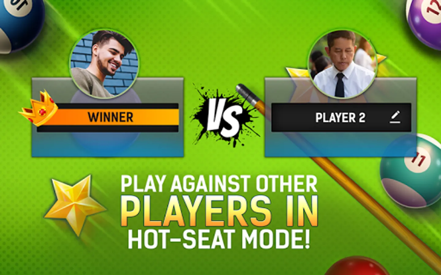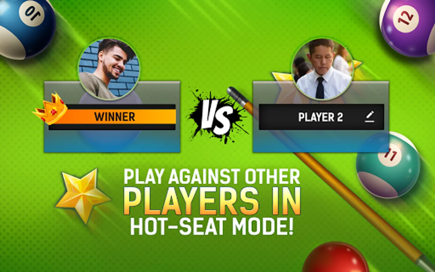 Have you ever wanted to challenge pro pool players in real time PVP challenges? Practice your skills in Pool Clash and prepare yourself for real tournaments! So, try to use Hot Seat Mode! It helps you to play with other players anywhere and anytime. Show them who is the best when you are sitting in one room.