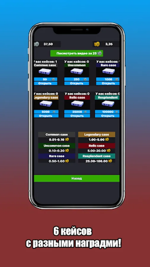 Money rain - allows you to earn money by opening cases and withdraw to any wallet! Application with passive income, by mining wbc-coin in the mine. WBC course - 1:100 rub. The minimum withdrawal is 500.00 gold (five hundred). Only 6 types of cases with progressive rewards! cases can be obtained for free by spinning the wheel of fortune every 30 minutes. Earnings with withdrawal are guaranteed!