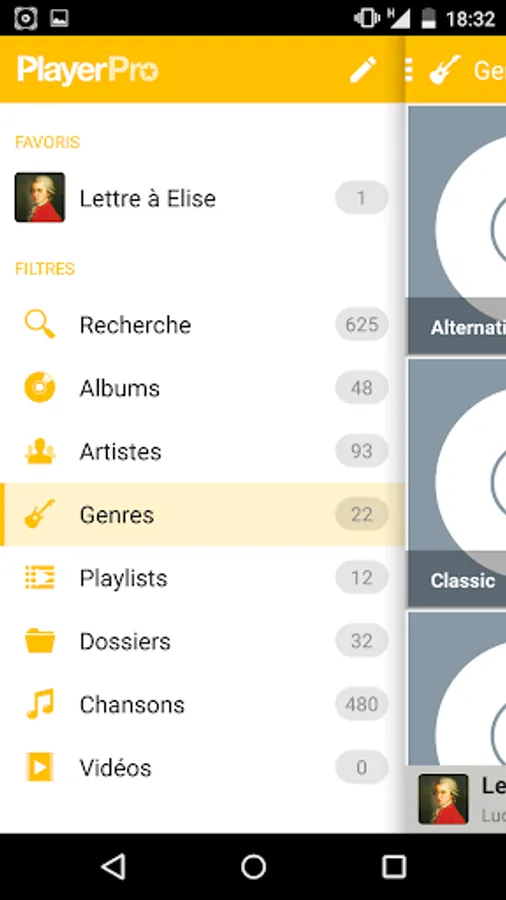 Once this app installed, the skin does not appear in your app list. To activate the skin: from PlayerPro's option menu, go to Settings > Look and feel and select the skin Flatty Yellow from the "Select skin" drop down list.